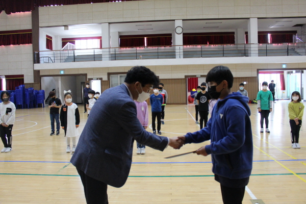| 김천 금릉초등학교(교장 곽칠희)는 4월 7일, 본교 강당에서 지역 공동 수영 영재학급 입급식을 실시했다.
