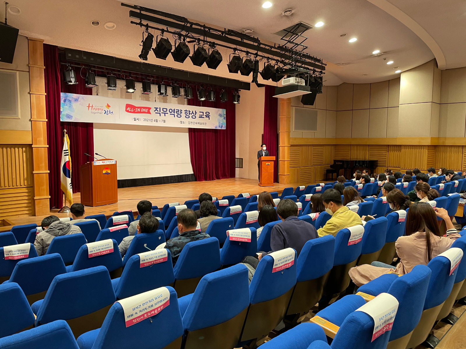 | 김천시(시장 김충섭)는 전 직원을 대상으로 한 직무역량 향상교육을 4월 8일부터 7월 22일까지 총 8회에 걸쳐 문화예술회관 소공연장에서 실시하고 있다.