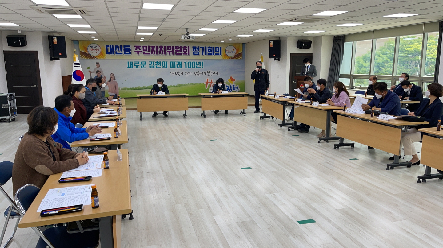 | 김천시 대신동 주민자치위원회는 지난 4월 9일 대신동 행정복지센터 2층회의실에서 전제등 대신동장, 최규탁 주민자치위원장과 운영위원 등이 참석한 가운데 정기회의를 개최했다.