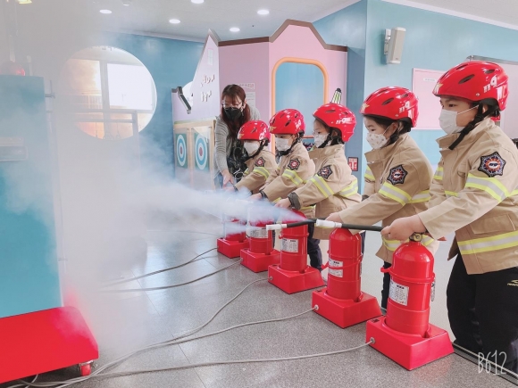 원생들은 소방관으로 변신해 직접 소화기를 사용해보는 시간도 가졌다. 원생들은 소화기를 이름과 명칭에 대해서는 알고 있지만 실제로 사용해보 는 것은 처음이였다. 원생들은 “소화기에 안전핀이 있는 것은 처음 알았어요. 소화기를 직접 사용해보니 너무 도움이 돼요”라고 말했다.