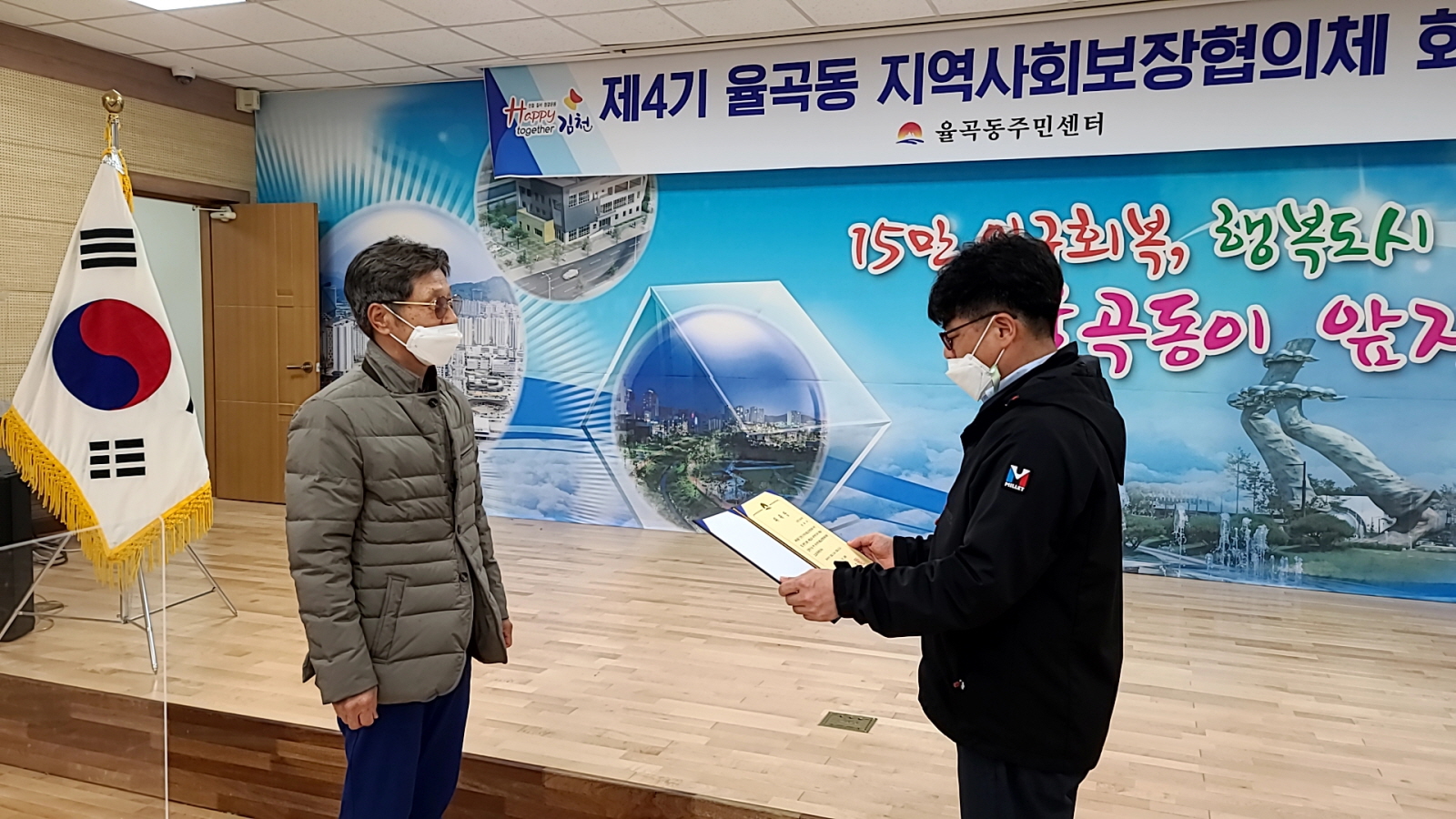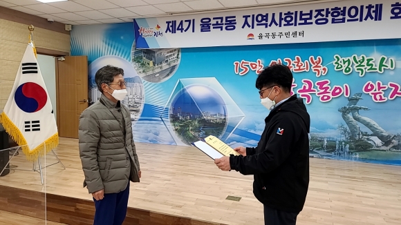 | 김천시 율곡동(동장 이우문)에서는 4월 9일 행정복지센터 2층 회의실에서 지역사회보장협의체(위원장 곽석진) 4월 정기회의를 개최했다. 이날 회의는 신규위원 2명에 대한 위촉장 전달과 함께 율곡동 주요 현안사항과 공지사항 등에 대한 설명이 있은 후 2021년 지역사회보장협의체 특화사업에 대한 논의를 했다.