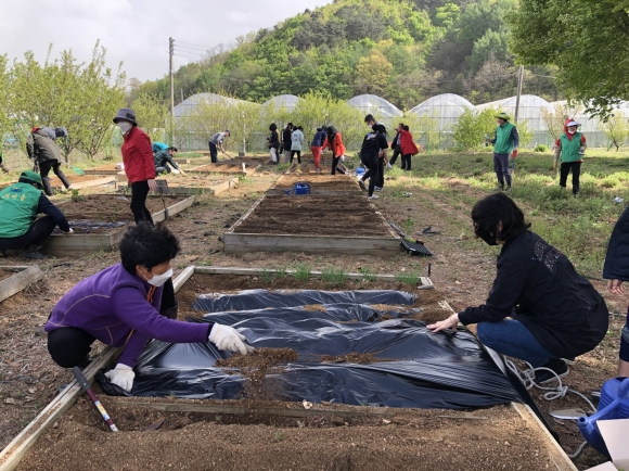 | 김천시새마을회(회장 임영식)는 4월 17일 황악예술체험촌(김천시 봉산면 소재)에 새마을공동체정원사업 ‘가족텃밭 정원학교’를 개강했다. 정원학교 참가자는 3월 29일부터 선착순(30가구) 모집했으며, 이날 개강식에서는 텃밭 추첨, 특색 있는 농장 이름 짓기, 팻말 만들기, 모종심기 등 텃밭 운영의 첫 단계를 시작했다. 새마을공동체정원사업은 2015년 행정안전부 공모사업에 선정, 기반시설을 조성한 후, 2016년부터 매년 30가구를 모집해 가구당 약6.6㎡(두평)텃밭을 분양하고 있다. 모종심기 및 농작물 관리 요령 등 텃밭 가꾸기 기본 교육과 더불어, 매월 셋째주 토요일마다 천연염색, 요리교실 등 다양한 프로그램도 병행하고 있어 인기만점이다.