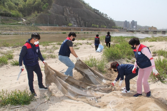 | 자유총연맹 김천시 자산동분회와 청년회, 어머니포순이봉사단에서는 지난 17일 김천시민들의 젖줄인 감천 주변 환경정화 활동을 펼쳤다. 회원 30여명은 자산동 지역의 감천 하류에서부터 맑은물사업소가 있는 하천변까지 연장 1.5㎞구간에 버려진 빈병, 캔, 비닐, 스티로폼 등을 수거했다고 밝혔다. 이날 불법 쓰레기 총 350kg 정도를 수거했다.