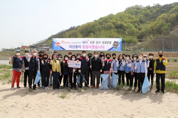한편, 자산동에서는 자연보호협의회, 자유총연맹 등 많은 단체들과 함께 하천 정화활동을 주기적으로 실시하고 있다. 시민주도의 해피투게더 김천 운동으로 변화시켜 청결한 시가지 조성에 총력을 기울일 방침이다.