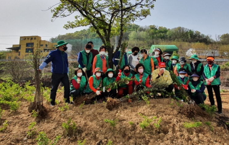 | 김천시 대곡동 남·여 새마을지도자협의회(회장 이도희, 박명희) 회원 30여명은 지난17일, 코로나19 계기로 기후 및 환경, 지역공동체의 일환으로 노증리 마을에 왕매실 20주, 미니사과20, 청매실10주, 피자두 20주, 복숭20주, 목련 3주 등 총 93주를 식재 하였다. 이날 나무심기는 대곡동새마을회원(형제농원 대표 최동수)이 기증하여 환경보전을 위한 실천에 앞장서 나무심기행사가 진행되었다.