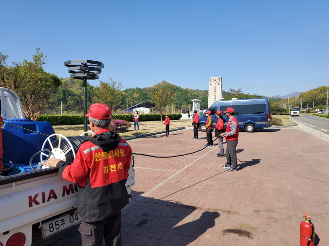 | 지례면(면장 송재용)은 봄철 건조한 날씨가 계속되어 산불 위험성이 높아진 4월 9일부터 4월 16일까지 총 3회에 나누어 장비점검 및 기계화진화 훈련을 실시하였다.