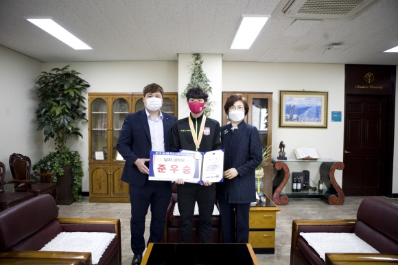 | 지난 1일, 김천대학교(총장 윤옥현) 스쿼시부가 창단 첫해 첫 전국대회인 제17회 대한체육회장배 전국스쿼시 선수권대회에서 남자 대학부 복식 우승, 단식 3위를 기록한데 이어 지난 14일 스쿼시계의 선구자인 아시아연맹 김원관(아호; 태산) 수석부회장의 발자취를 기리기 위해 신설 개최된 ‘제1회 태산배 전국스쿼시선수권대회’ 복식에서 이용정(항공호텔전공), 김승현(항공호텔전공) 선수가 우승, 대학부 남자 단식에서 김승현 선수가 준우승을 차지하였다.