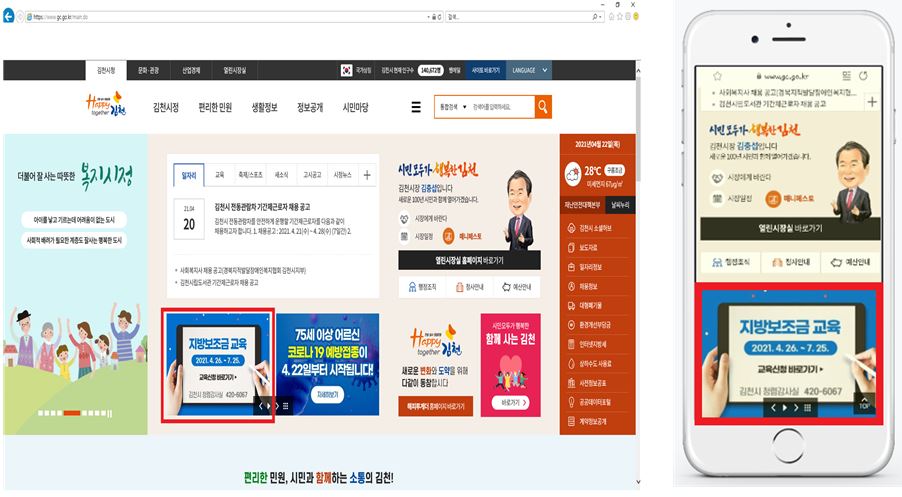 교육의 주요내용은 「공공재정환수법」에 대한 이해, 지방보조금 교부, 집행, 정산에 대한 보조금 관련 규정 및 유의사항 등으로 구성되어 있으며, PC나 모바일을 이용하여 김천시청 홈페이지 접속 후 「지방보조금 교육」 배너를 통해 손쉽게 수강할 수 있다.