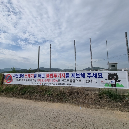 하천변 쓰레기 불법투기 금지 현수막 게시