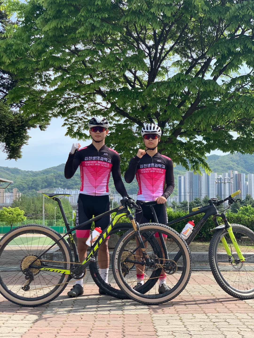 | 김천생명과학고등학교는(교장 유인식) 4월 24일(토) 충북 제천에서 개최된 ‘2021 제 1차 MTB 국가대표 선발 평가대회’에서 고등부 1위 허승수(3학년), 3위 송명관(2학년)이 입상하는 쾌거를 이루었다. 한국산악자전거연맹 주관으로 진행된 이번 대회는 전국 고등학교, 대학, 실업팀 선수까지 참가해 성황을 이루었다. 각 대표선수들은 평소 닦은 기량과 실력을 마음껏 발휘하며 산악자전거를 통해 심신의 건강을 다지고, 개인 및 학교의 명예를 위해 최선을 다하는 모습을 보였다.