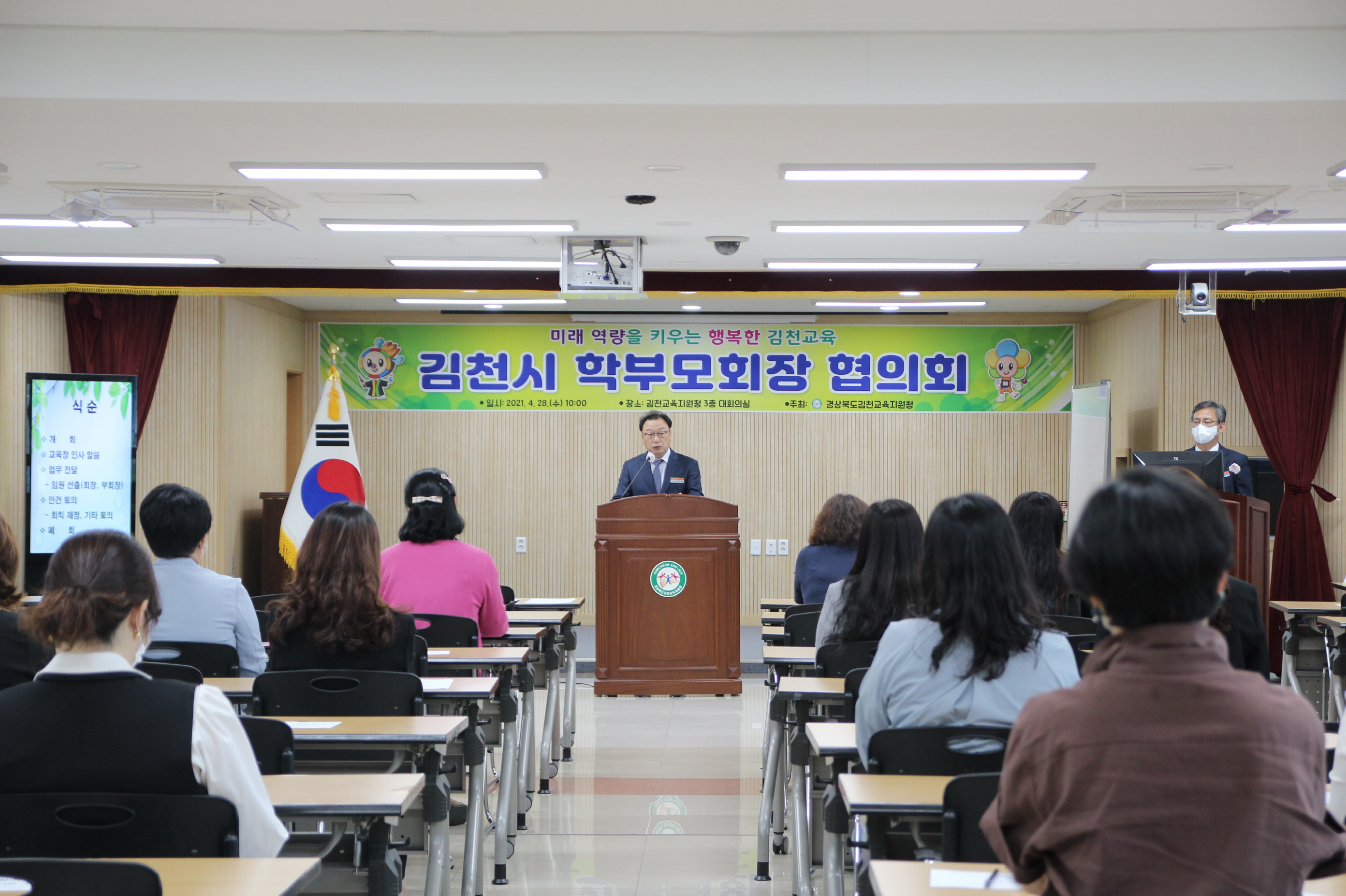 | 경상북도김천교육지원청(교육장 박삼봉)은 4월 28일(수) 3층 대회의실에서 관내 초·중·고 학부모회장 대상으로 학부모의 교육참여 활성화 및 내실있는 학교 자치기반 마련을 위한 2021 김천시 학부모회장 협의회를 개최하였다.