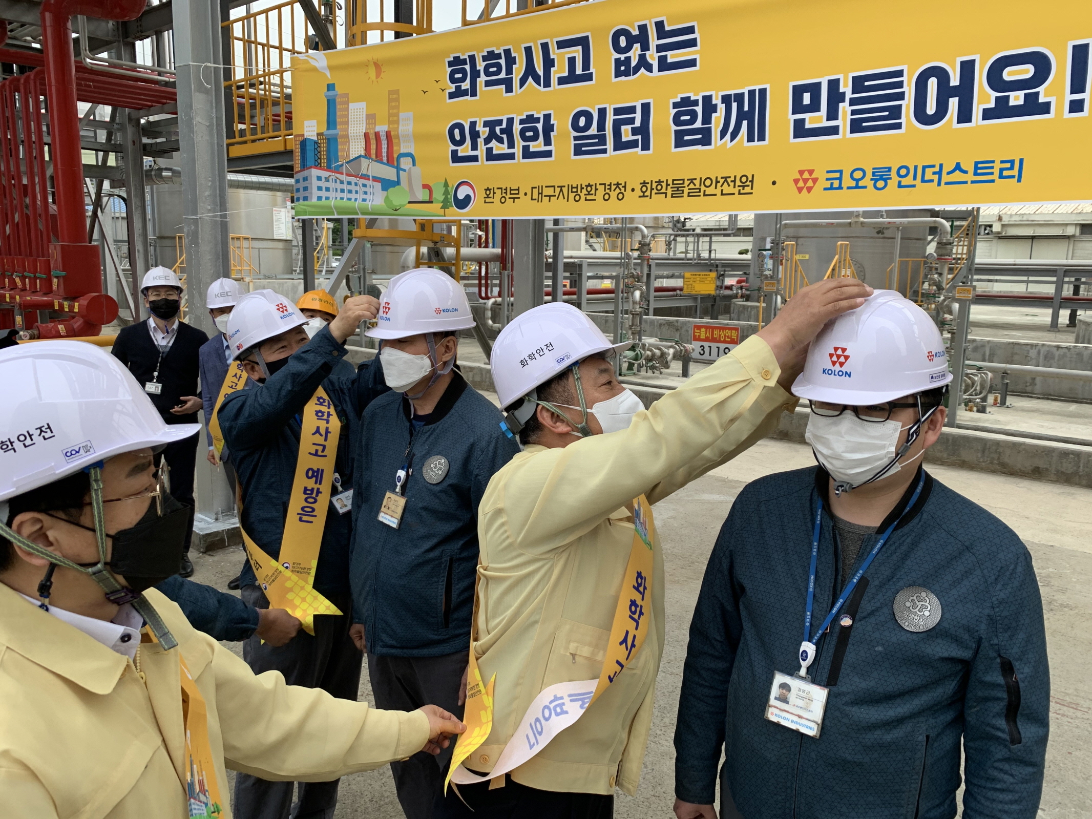 | 대구지방환경청장(이영기)은 28일 구미시 소재 코오롱인더스트리(주) 구미공장을 찾아 구미권 화학안전공동체 7개사 경영진과 감담회를 갖고 화학사고 발생의 근본적 원인 진단을 통해 산업계가 사고 최소화 방안을 스스로 마련하여, 취급시설 개선 등에 적극 동참해 줄것을 요청하고, 코로나19에 따른 건의사항 및 애로사항을 청취했다.
