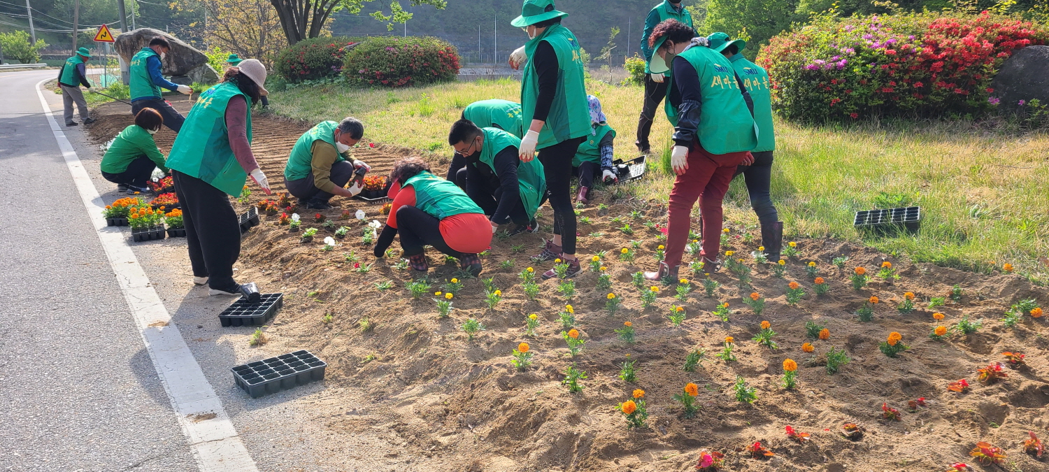 증산면 새마을지도자남녀협의회 연도변 꽃묘 식재