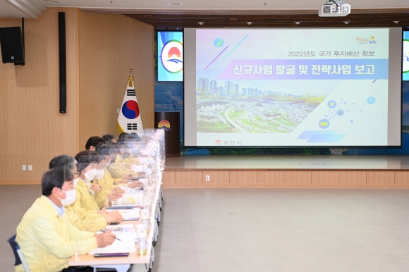 시는 지난 28일 김충섭 시장 주재로 국·소장 및 실과장이 참석한 가운데 시청 3층 강당에서 「2022년도 국가투자예산 확보 보고회」를 가졌다.
