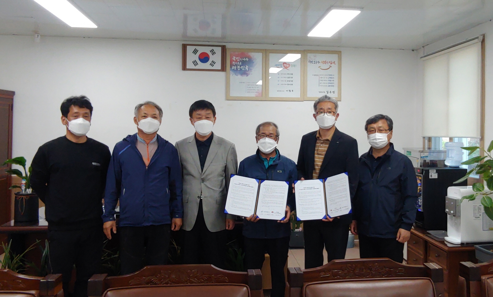 | 한국수자원공사 부항댐지사와 부항면 주민자치위원회는 4월 29일(목) 연도변 꽃길 조성 사업 지원 협약을 체결했다. 이날 협약식은 방역수칙을 준수하며 부항면사무소에서 최소 인원으로 개최하였다. 이번 협약식으로 수자원공사에서는 부항면 주민자치위원회에 연도변 꽃길 조성 사업을 지원할 계획이다.
