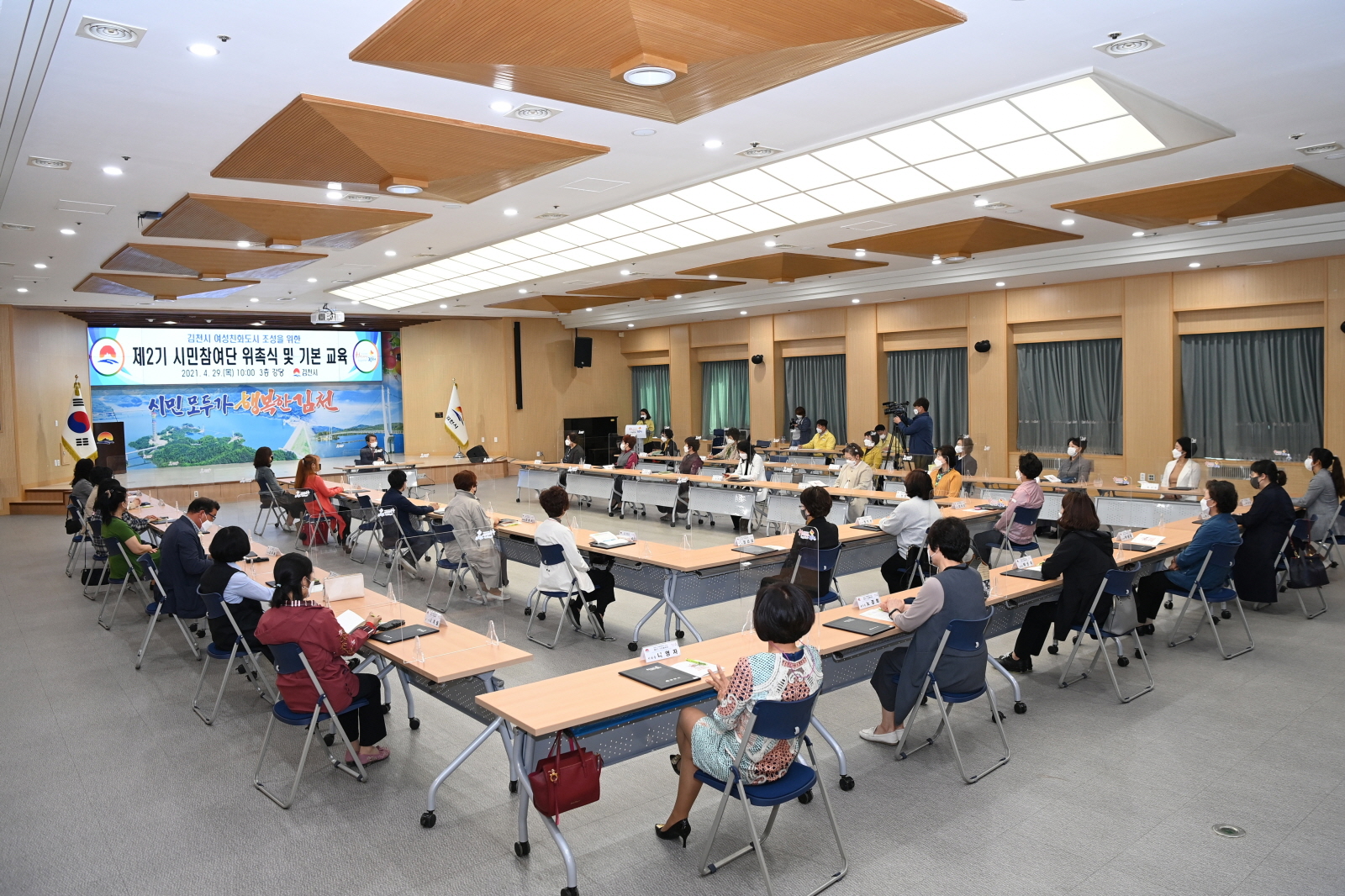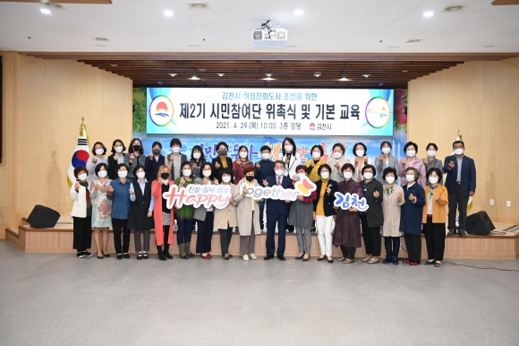 | 김천시(시장 김충섭)는 4월 29일 시청 3층 강당에서 여성친화도시 조성을 위한 제2기 시민참여단 위촉 및 교육을 실시하였다.