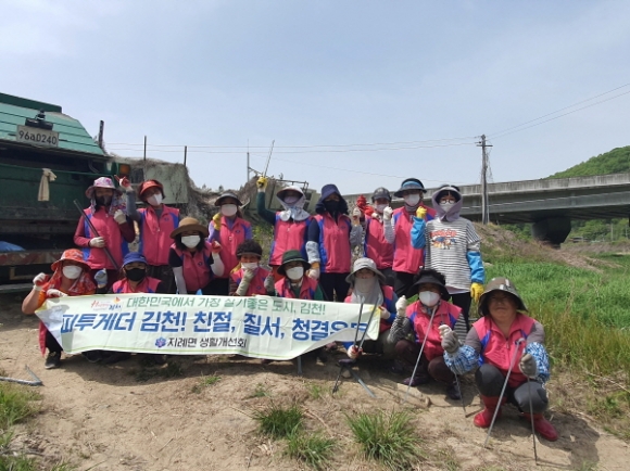 | 김천시 지례면 생활개선회(회장 염이화)에서는 철저한 방역지침을 준수하면서 지난 28일 봄을 맞아 구성면 구미리와 지례면 교리 경계지점 하천변에 불법투기 되어 있는 각종 생활쓰레기를 수거하는 대대적인 환경정화 활동을 추진하였다. 이날 정화활동에 회원 20여명이 참석했으며 장기간 방치된 불법쓰레기와 적치폐기물 등 2t가량을 수거하고 빈병, 빈캔, 폐지 등 재활용품을 선별했다. 엄이화 생활개선회장은 “환경정화 활동에 기꺼이 함께해 주신 회원들께 감사드리고 앞으로도 깨끗한 환경 조성을 위해 주기적으로 환경정화 활동을 이어갈 것”이라고 말했다.