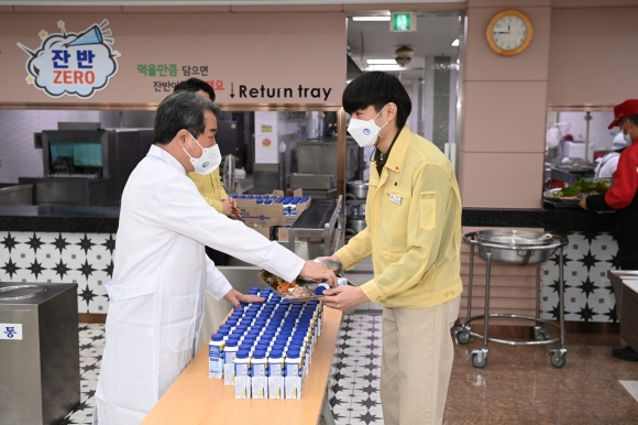 김충섭 김천시장 코로나19 직원 격려 구내식당 배식봉사
