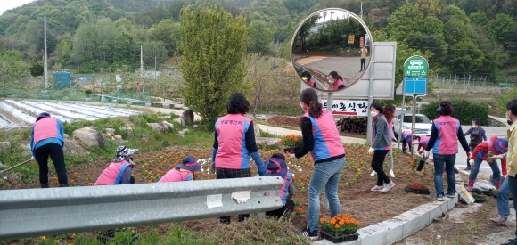 증산면 생활개선회 연도변 꽃묘 식재