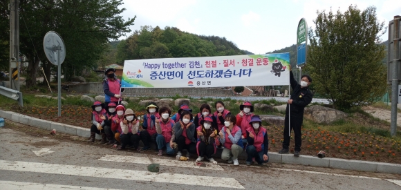| 김천시 증산면 생활개선회(회장 백순례) 회원들은 30일 증산면 평촌리 일원에서 깨끗하고 아름다운 환경을 조성하기 위해 꽃묘 식재 작업을 실시하였다. 이날 회원 20여명은 코로나19 방역수칙을 철저히 지키며, 지역주민 및 관광객들을 위해 보다 나은 환경을 제공하기 위해 환경정화활동과 더불어 메리골드, 페츄니아 등 1,000여 본을 식재하였다.