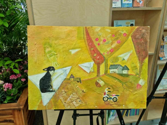 이원순 작가의 그림은 밝은 색감과 기발한 상상력이 가미된 그림으로, 싱그러운 5월의 날씨와 잘 어우러져 마치 동화나라에 온 듯한 느낌을 준다. 아이들의 감성을 살린 밝은 색감에 원목으로 된 도마, 아크릴, 크레용 등 다양한 재료로 작품을 완성했다.