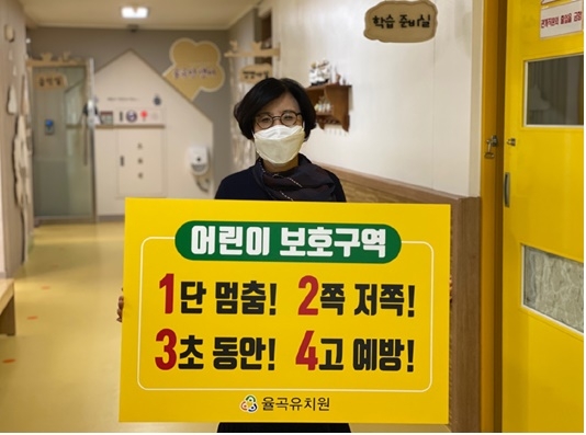 율곡유치원 원장은 “이번 캠페인을 통해 어린이 보호구역에서 발생하는 교통사고 예방은 물론 어린이 보호 최우선 문화가 정착 되어지기를 바란다.”라며 소감을 전했다. 율곡유치원은 어린이 보호구역 내에서의 교통안전에 대한 관심과 참여가 지속되어지길 바라며 다음 캠페인 동참 주자로 율빛유치원과 농소유치원을 추천하였다. |