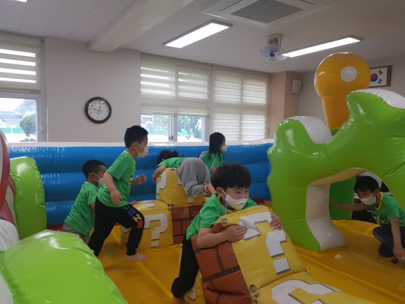 | 김천모암초등학교병설유치원(원장 하헌택)은 5월4일 원아 11명이 즐거운 어린이날을 맞이하여 코로나19로 야외체험활동을 할 수 없는 유아들을 위해서 교실에 에어바운스를 설치해서 신나는 하루를 보냈다.