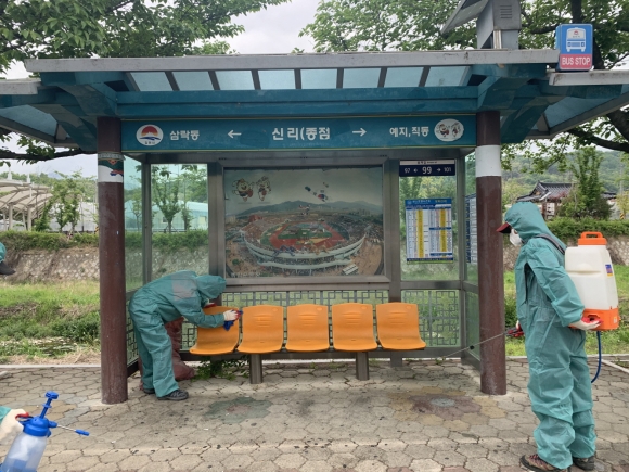 | 봉산면 주민자치위원회(위원장 김호경)는 4일 코로나19의 지역사회 추가 확산 방지를 위해 버스승강장, 경로당 등 관내 다중이용시설에 대해 집중소독을 실시했다.
