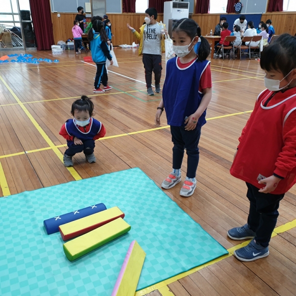 놀이 한마당은 먼저 학년별 달리기로 시작하였는데 유치원 친구들은 모두 4명으로 연령과 체력 수준이 다르긴 해도 같이 할 수 있다는데 의미를 두고 신나게 달렸다. 다음으로 각 담임 선생님이 담당한 7개의 다양한 체험들을 순회하였다.