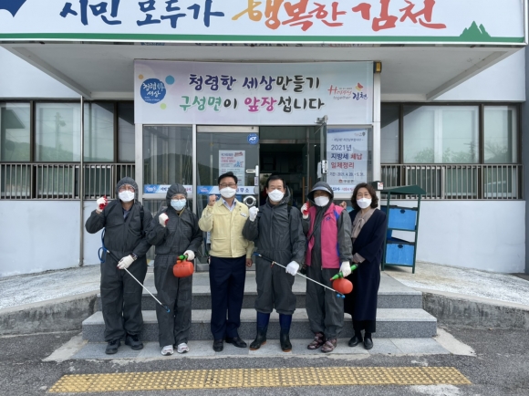 | 김천시 구성면 주민자치위원회(위원장 심재혁)는 7일 코로나19 확산 방지를 위해 행정복지센터를 비롯한 관내 다중이용시설에 방역활동을 했다.