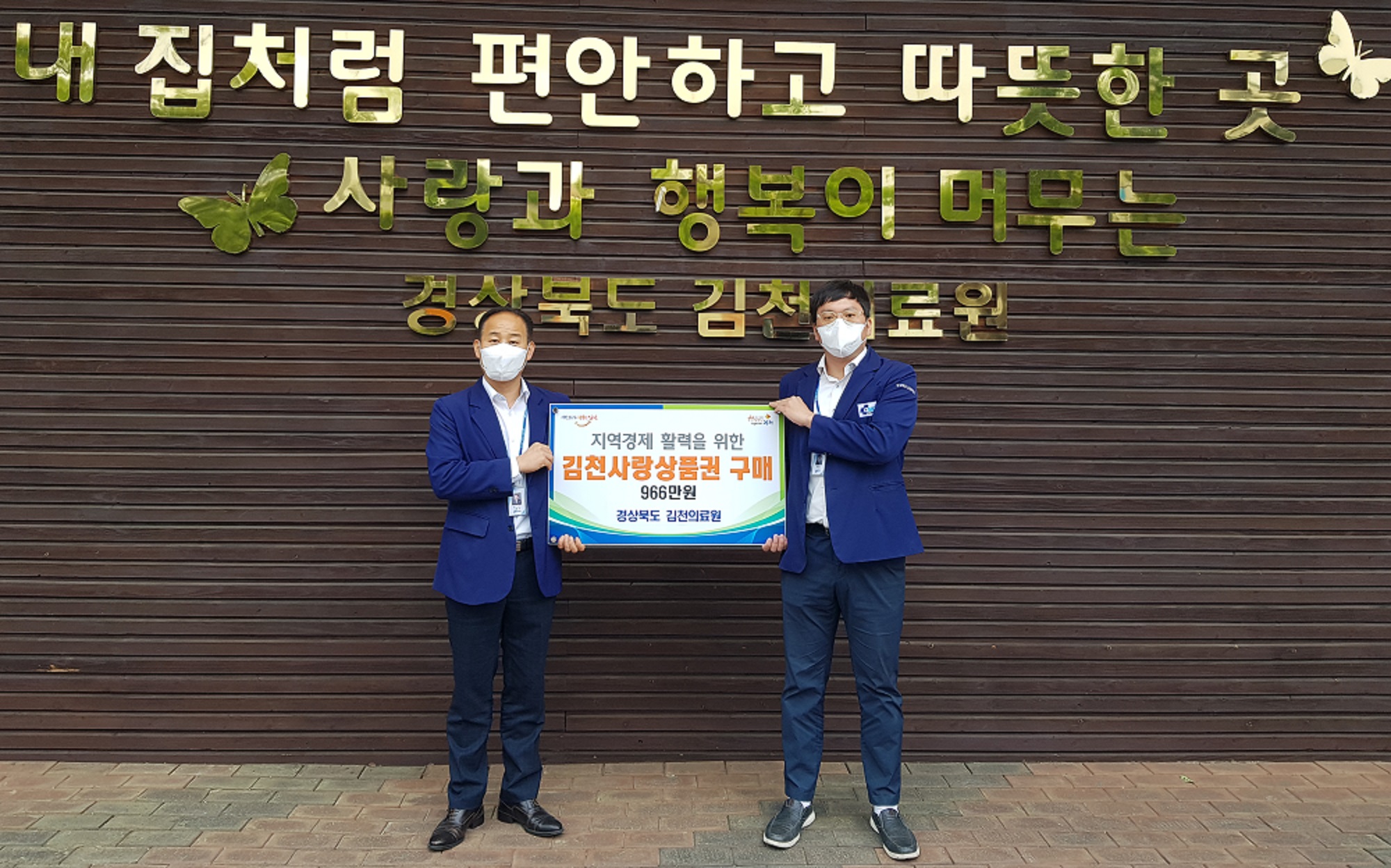 | 김천시(시장 김충섭)에서 지역자금 선순환과 경제 활력을 위하여 추진하는 ‘김천사랑상품권 구매 운동’에 지난 7일 경상북도 김천의료원이 동참하였다.