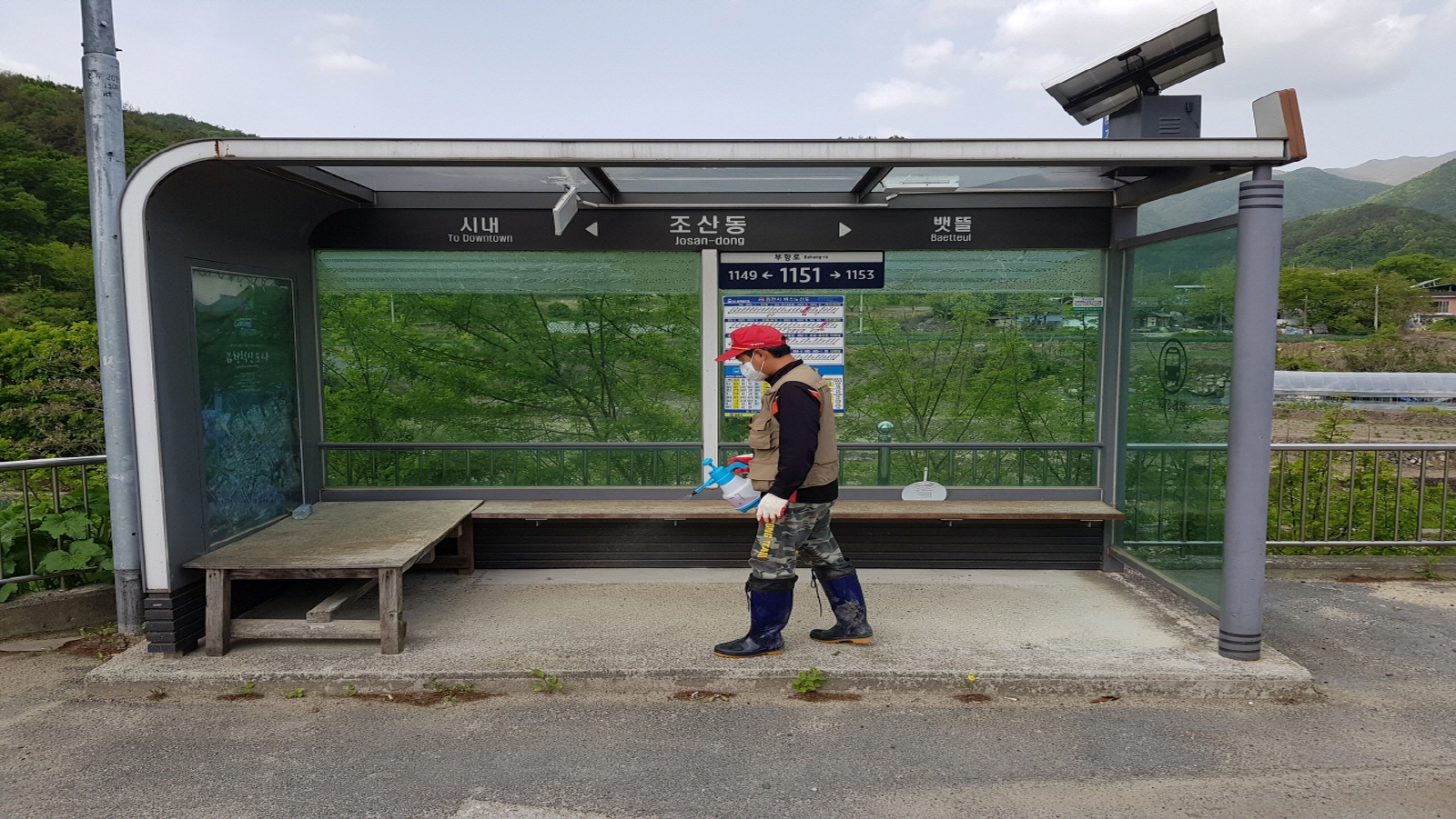 | 부항면 자율방범대(대장 김철환)는 어버이날을 앞두고 5월 7일(금) 10명의 회원이 모여 부항면 마을 방역을 실시했다. 부항면 버스승강장 27개소를 시작으로 마을 야외쉼터 26개소를 방역했다. 또한 주민들에게 마스크 착용 및 어버이날 이동 자제 사항을 홍보했다.