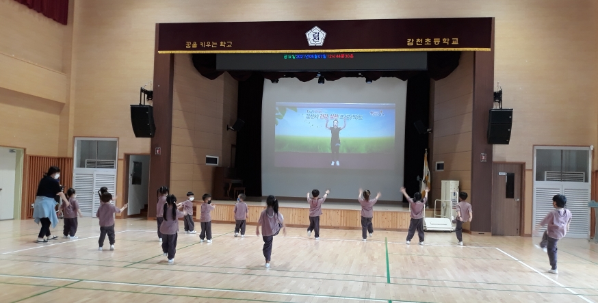 2021학년도 3월부터 점심시간을 이용하여 유치원과 학생들의 건강을 위하여 유치원과 감천초등학교 학생들이 평소 활동하기에 편리하고 학생들의 취향을 고려하여 점심시간을 이용하여 본교 강당에서 신나고 자유롭게 스트레스를 없앨 수 있는 운동 시간을 마련하였다.