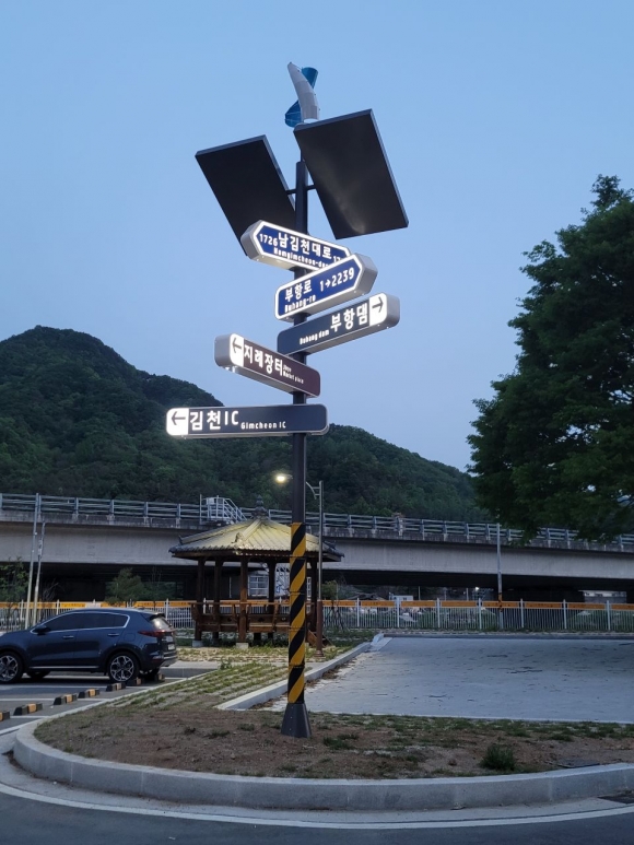 | 김천시(시장 김충섭)는 지난 5월 10일 지례면 상부삼거리 다목적광장에 도로명주소를 생활화하고, 김천을 찾는 관광객들이 야간에도 목적지를 쉽게 찾아갈 수 있도록 LED 조명 멀티도로명판을 설치했다.