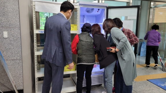 | 김천시 율곡동(동장 이우문)에 소재한 혁신중앙교회(목사 이충현)에서는 5월 10일 율곡동행정복지센터를 찾아 나눔냉장고에 밑반찬을 지원했다.