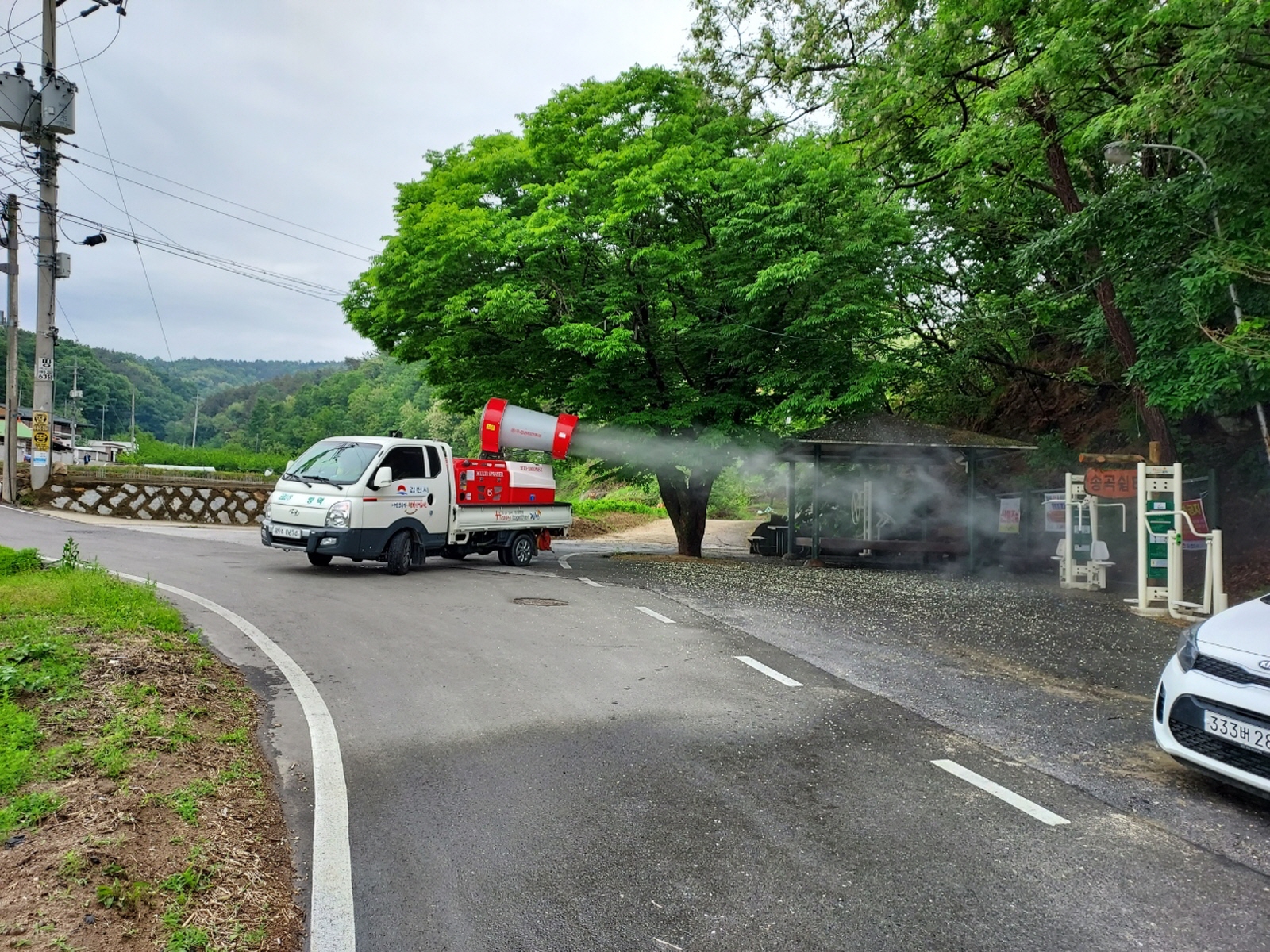 또한 감천면 마을 전체에 대해서도 방역차량을 지원받아서 마을진입로 및 골목길, 영농현장 주변으로 대대적인 방역활동을 전개하였다.