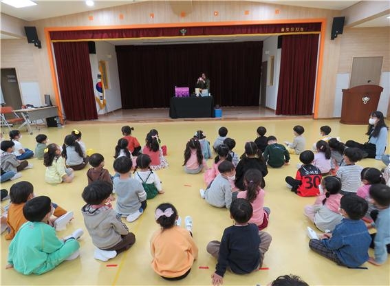 | 율빛유치원(원장 이미화)은 5월 12일(수)에 만 4, 5세 유아를 대상으로 율빛유치원에서 작가와의 만남 행사를 진행하였다.