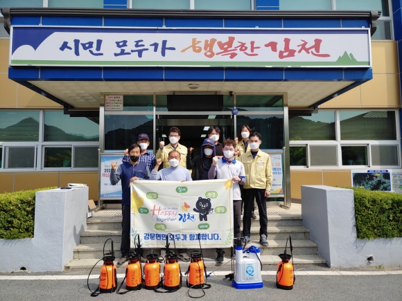 | 관내 코로나19 확진자가 연일 발생하고 있는 위기 상황 속에서 김천시 감문면 이장협의회(회장 송진호)가 코로나19 일제방역으로 주민들을 지키기 위해 나섰다. 이장협의회원들은 14일 오전 10시 「일제 방역의 날」을 맞아 코로나19 감염증 확산방지를 위한 방역 소독활동을 실시했다.
