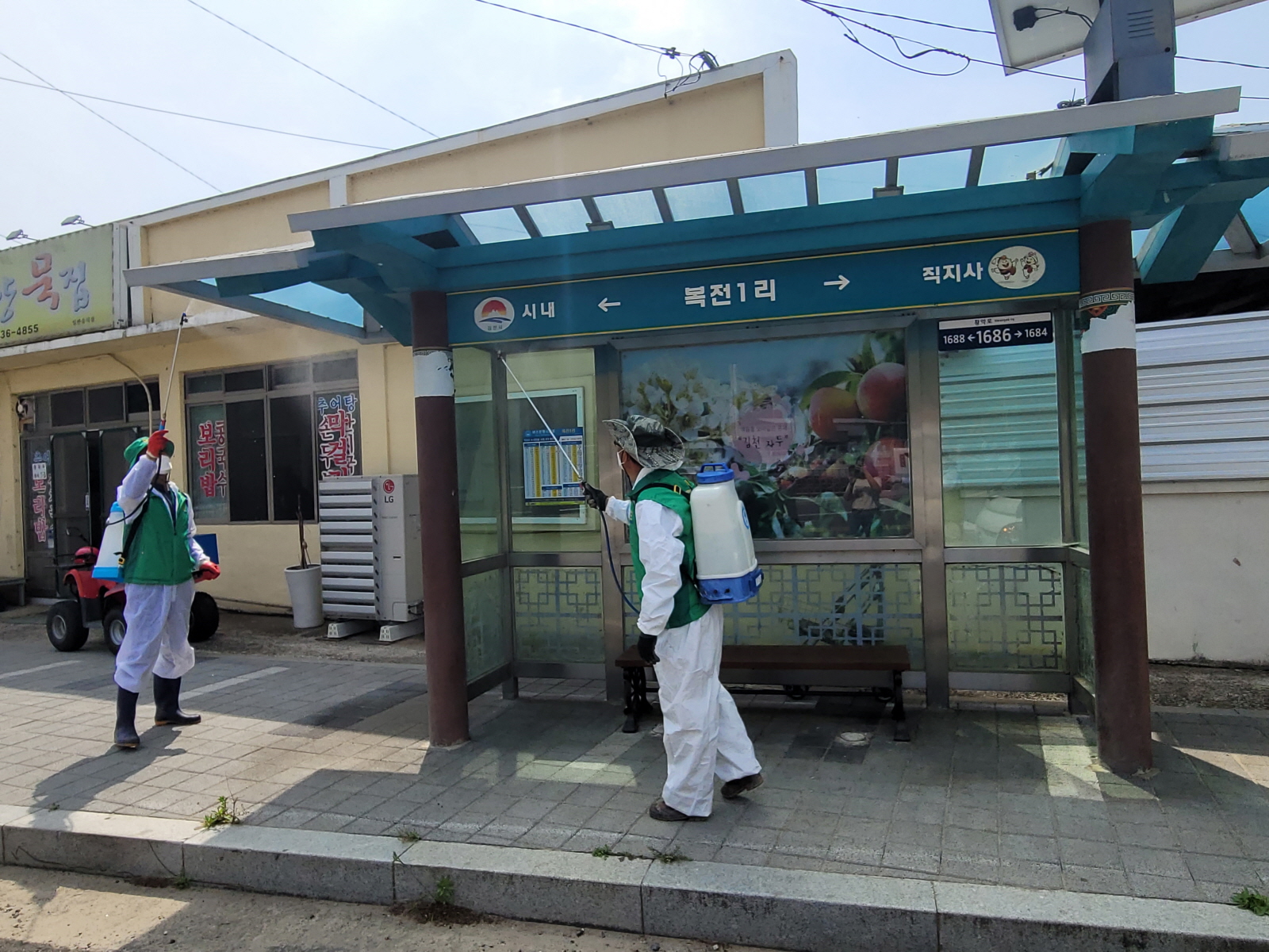 | 김천시 대항면 새마을남녀협의회(회장:이루환, 부녀회장:유남순)는 코로나19 확산 방지를 위해 14일 오전10시부터 관내 버스승강장 방역활동을 실시했다.