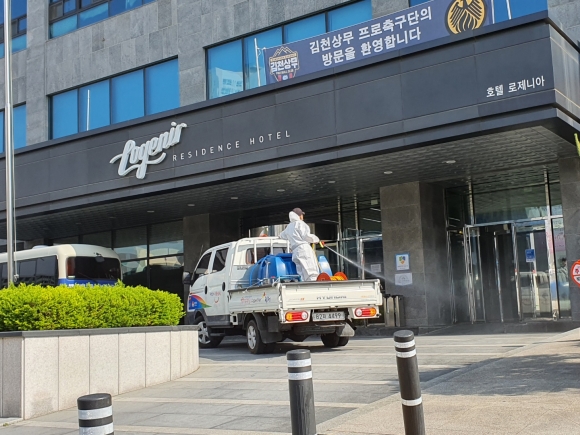 | 김천시 율곡동행정복지센터(동장 이우문)에서는 최근 김천지역 코로나 19 확진자가 급속히 증가함에 따라 코로나19 확산을 차단하기 위해 3중 안심시스템을 가동하여 율곡동내 전역에 걸쳐 대대적인 방역소독 활동에 총력을 기울이고 있다.