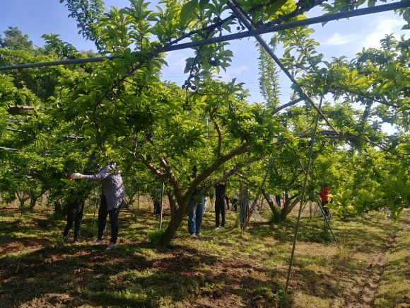 지난 5월 13일 농업정책과(과장 김영우) 직원 13명은 구성면 하강리소재 자두농가 적과작업에 구슬땀을 흘렸다. 특히, 금년도에는 대석자두농가가 그 어느때보다 어려운 실정으로 자두주머니병이 많이 발생하여 자두농가의 시름을 다소나마 들어주고자 자두농가를 찾았다고 전했다.