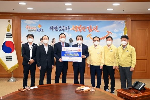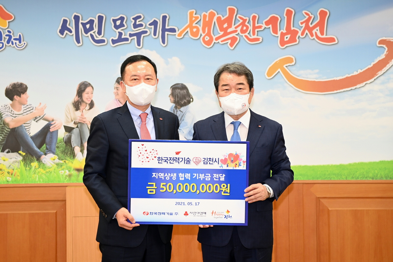 | 한국전력기술(사장 김성암)에서는 지난 17일 김천시(시장 김충섭)를 방문하여 우리지역 취약계층 아동과 가족을 지원하는 지역상생협력기부금 5,000만원을 전달하였다. 기부금은 드림스타트 멘토링 사업 2,000만원, 독도수호방문사업 1,000만원, 지역취약계층 아동 간편식 사업에 2,000만원이 지원 될 예정이다.