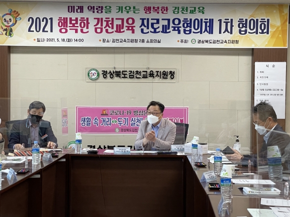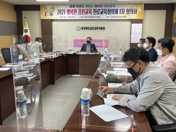 | 김천교육지원청(교육장 박삼봉)은 5월 18일(화)에 지역사회와 함께 우리마을 진로교육의 방향을 나누는 『폭넓은 교육공동체 협의를 통한 진로교육의 패러다임 제안』이라는 주제로 지방자치단체, 민간, 대학, 지역기업, 유관기관의 위원들을 대상으로 행복한 김천교육 진로교육협의체 협의회를 실시하였다.