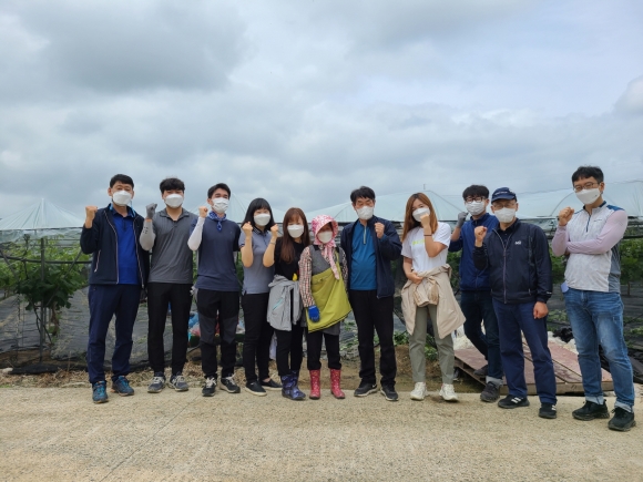 농가주는 “코로나19로 일손을 구하지 못해 애가 탔는데 바쁜 업무에도 불구하고 직원들이 이렇게 도와줘서 한시름 놓았다.”며 고마운 마음을 전했다.