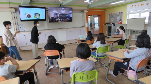 또한 이날 수업은 5월 17일(월)부터 5월 28(금)일까지 2주간 ‘농어촌 교육실습’을 하고 있는 대구교육대학교 교육실습생(3학년 학생 9명)들이 참관하도록 하여 실제 학교에서 이루어지고 있는 화상 교육의 현장을 직접 보는 좋은 기회를 제공하였다.