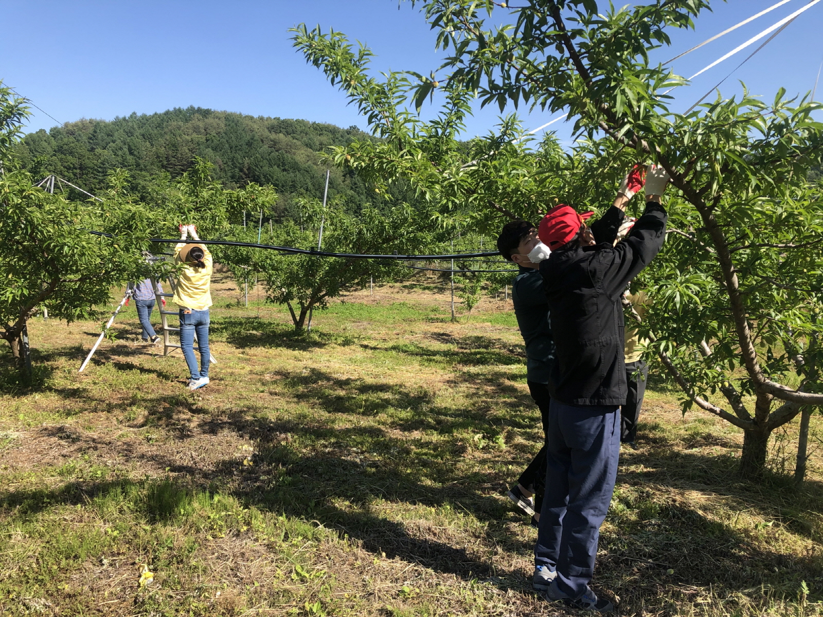 농촌 인력의 고령화 및 코로나 19의 장기화로 인해 영농철 일손 부족이 반복되고 있어 부항면 직원들은 사회적 거리두기 지침을 준수하며 복숭아 솎기작업에 임하였다.