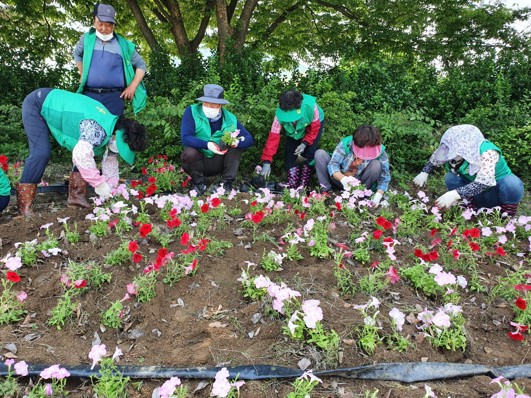 이 날 행사는 조마면 새마을남녀지도자협의회 회원 20여명이 참여하여 메리골드, 페츄니아 등 형형색색의 꽃을 강곡리 일대 연도변 화단에 식재하여 화사한 분위기를 연출하였다.
