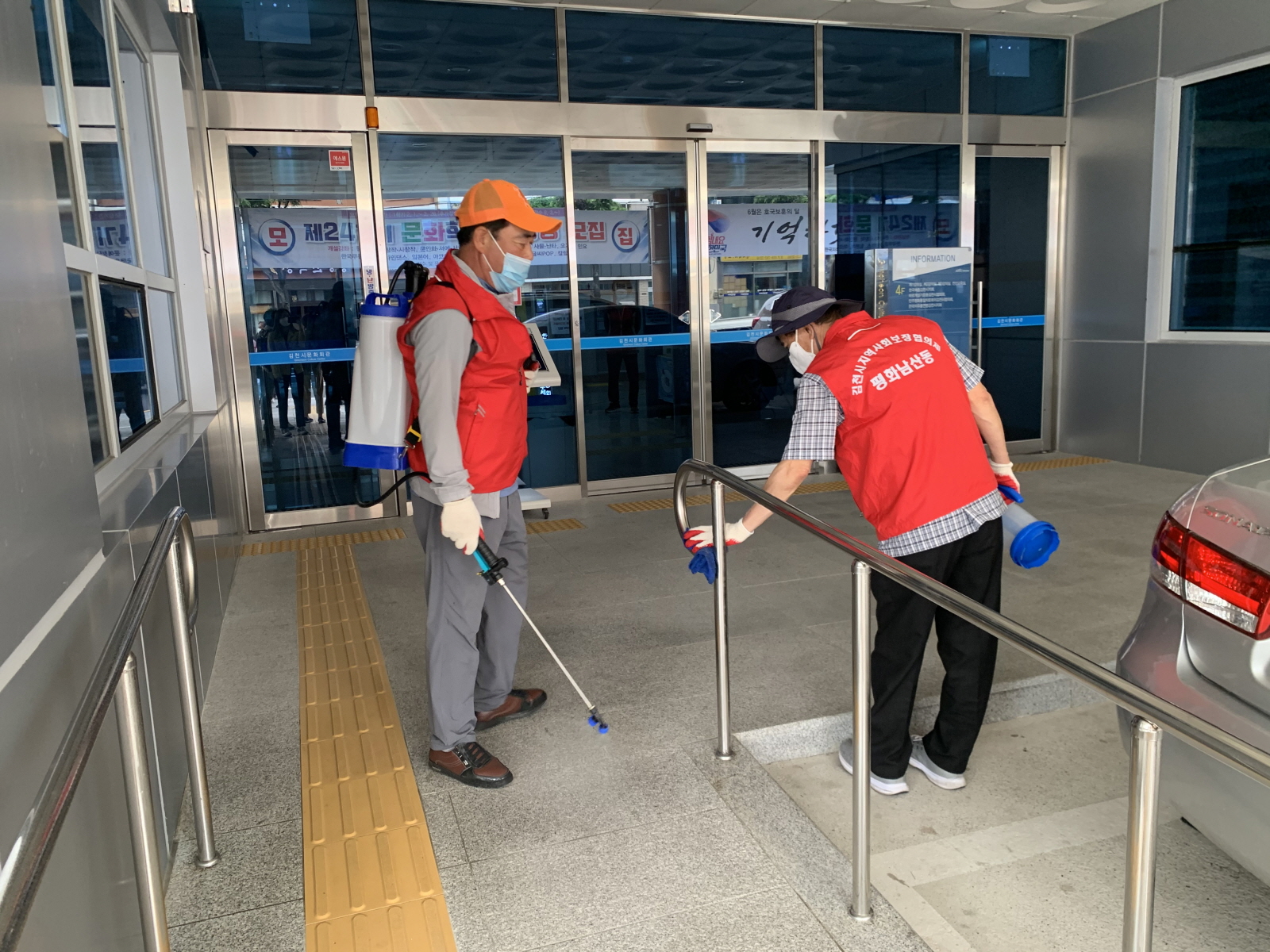 코로나19 확진자가 연일 발생하고 있어 주민들의 불안감이 계속되는 가운데 이번 방역활동에는 평화남산동 지역사회보장협의체(회장 고진석)가 나섰다. 지역사회보장협의체 회원들은 불특정 다수의 이용이 많은 야외운동시설의 손잡이, 난간, 공중전화박스 등 방역 취약지점을 꼼꼼하게 소독하였고 길거리 분무소독도 실시하며 혹시 모를 감염에 적극 대비하였다.