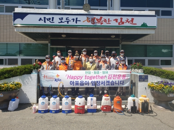 이날 방역에 참여한 아포읍 의용소방대 15명은 읍청사 주변, 덕일한마음아파트 입구, 우체국, 공원, 공중화장실 등 관내 다중이용시설을 집중 소독하고 주민들에게 코로나19 예방 수칙을 홍보했다.