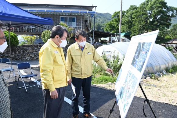이는 코로나 19로 인해 자칫 자연재난 대비에 소홀 할 수 있다고 판단한 것으로, 현재 재해예방사업 중인 감문 문무 재해위험개선지구 안전점검을 겸하여 장마철 사업장 진행상황을 확인하였다.